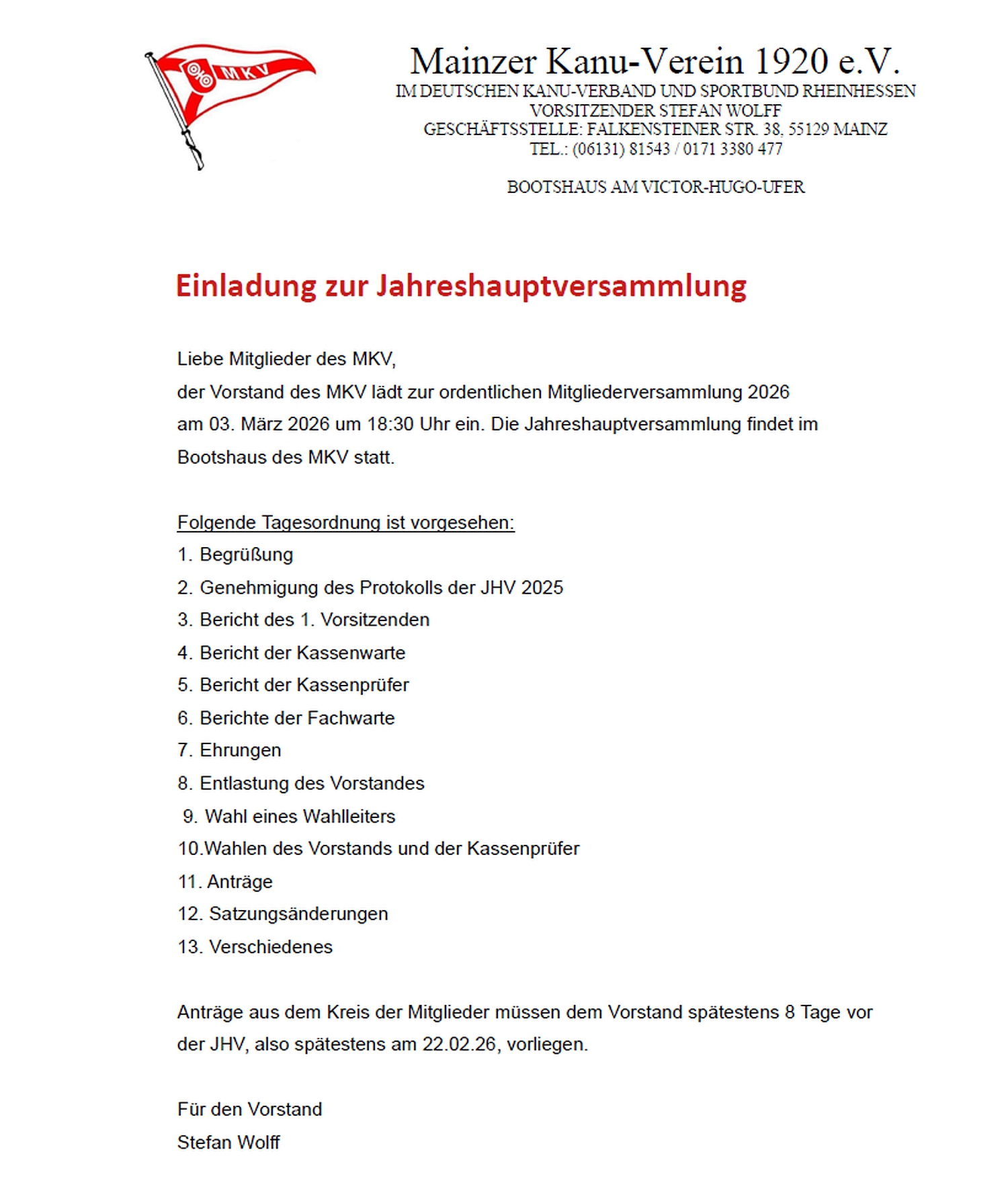 Einladung Jahreshauptversammlung 2026